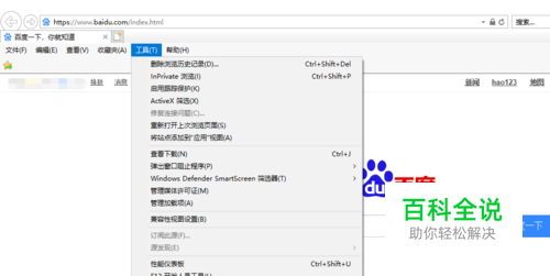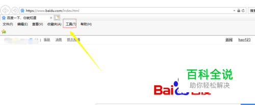 打开你的ie浏览器。点击上方菜单工具,如下图所示