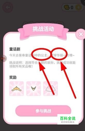 在活动说明中有提示关键词, 公主,华丽。点击下方的参与挑战正式开始装扮。