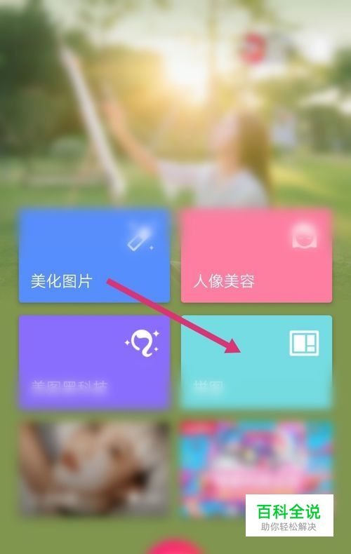 首先,下载一个手机美图秀秀,进入软件,点击【拼图】。