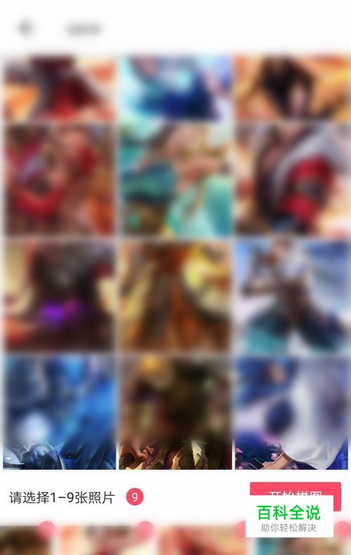 然后准备图片,先跟大家说明一下,如果你有81张图片,就选择九张图片,如果你有36张图片,就选择6张图片添加,这个意思大家懂了吧。