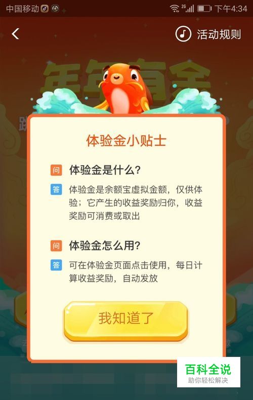 体验金是什么? 参与活动后,系统会随机给予一定数量的体验金,这里的体验金可以放到自己的余额宝中产生收益,但是这笔体验金到期后就会被收回