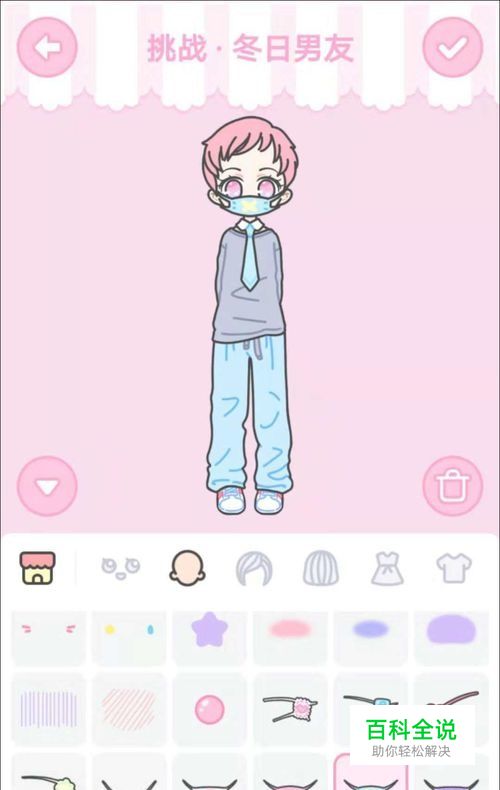 口罩 冬日天气寒冷,就给自己的男友再搭配上一直口罩吧(位置见下图),体现你的关心。 这样就搭配完毕了,冬日暖男的形象就出来了,点击“√”提交过关吧