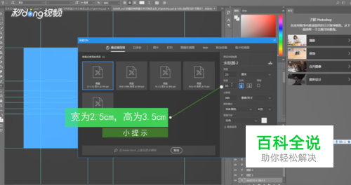 点击左上角“文件”,选择“新建”,新建一个宽为2.5,高为3.5,分辨率为300的文件,点击“创建”。