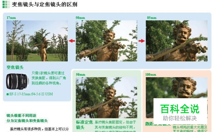 单反镜头 单反镜头结构: 单反镜头分类: 1、变焦镜头- 可以改变焦距的镜头2、定焦镜头- 定焦距的镜头 鱼眼镜头 - 焦距极短并且视角接近或等于180°的镜头。 16mm或焦距更短的镜头通常即可认为是鱼眼镜头。 超广角镜头 - 一般焦距为12mm-24mm 广角镜头 - 焦距短于标准镜头(50mm),镜头成像比实际事物为小,透视感较夸张。 标准镜头 - 镜头焦距为 50mm,与人眼视觉接近。 远摄镜头 - 焦距200mm或以上,视角小于12度,压缩感强。当中焦距达400mm或以上称为“超远摄镜头”。 反射镜头 - 反射镜头是指利用两次光线反射从而大幅缩减镜头长度的特殊镜头。特点是色散控制非常好。 移轴镜头 (Tilt-shift photography) - 移轴镜头是一种能调整影像透视关系或全区域聚焦的镜头。移轴镜头的作用主要是纠正被摄物的透视变形和实现被摄体的全区域聚焦,使画面中近处和远处的被摄体都能结成清晰的影像。 微距镜头 - 作微观拍摄之用, 因为放大比率及最近对焦比一般镜头为高,所以一般用来拍摄十分细微的物体, 如花卉及昆虫。 增距镜 - 作为增加原有镜头的焦距,但多数只用于远摄镜。 带防抖功能的镜头防抖功能镜头是指可根据手抖动产生的运动量通过移动部分补偿用光学透镜,从而消除由此引发的画面抖动的镜头。该机构可以防止出现手抖动,以获得锐度高的画面,同时由于是光学系统的实时移动,因此还具有可提高取景器成像稳定性以及自动对焦性能的优点。内置防抖机构的镜头标有Image Stabilizer(图像稳定器)的英文缩写IS。将镜头的“STABILAIZER”开关置于“ON”即可启动防抖功能。何谓EF-S镜头 EF-S镜头是专门为采用APS-C尺寸图像感应器的数码相机设计的特殊镜头。成像圈(镜头成像大小)比通常的镜头要小,具有能够减小镜头体积的优点。EF-S中的“S”来源于英文“Small Image Circle”(小成像圈)的首字母。 EF-S 17-55mm f/2.8 IS USMEF-S镜头包括广角变焦镜头EF-S 10-22mm f/3.5-4.5 USM、标准变焦镜头EF-S 17-55mm f/2.8 IS USM、微距镜头EF-S 60mm f/2.8 USM微距等多款。 小提示:镜头遮光罩的功能安装于镜头前部的镜头遮光罩具有遮挡杂光的功能。虽然镜头表面具有能够防止反射的镀膜,但在强逆光条件下最好同时安装遮光罩以避免光线乱反射。推荐最好是经常安装使用。