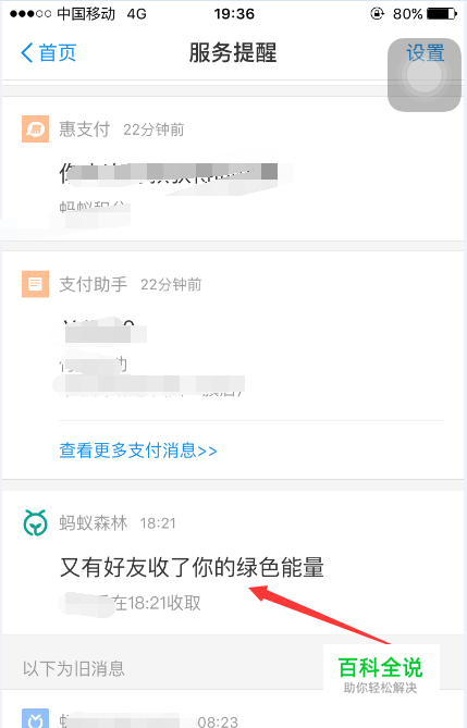 登录支付宝后,找到蚂蚁森林的入口,小编一般在支付宝的服务提醒进入蚂蚁森林,如图所示。