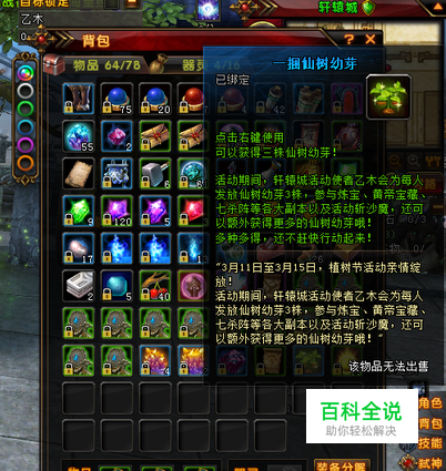 活动期间每天可以到活动使者乙木处领取3株仙树幼芽。需要到指定的地点种植仙树幼芽,各种娃娃出现会给你带来大量的银票、经验丹、玫瑰等。