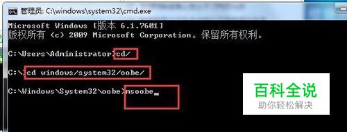 接下来输入“cd windows/system32/oobe/”按回车确认