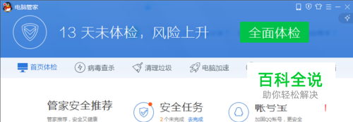 下载完成之后,就是安装了,安装完成后就是要打开电脑管家了,打开电脑管家之后我们要找到工具箱,工具箱就在电脑管家的最右侧。我们点一下进入工具箱。