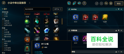 【出门装】 多兰戒,这样小法前期Q补刀会比较顺畅,而且提供的回蓝效果和生命值都很不错。