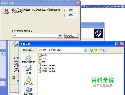 找到我们下载的“MFC-1919NW添加打印机向导驱动”(要提前解压好哦,程序是自动解压的),点击确定。 技巧:你可以将此驱动在你电脑共享,然后在“厂商文件复制来源”输入驱动共享的路径(例如:\\192.168.0.173\共享\MFC-1919NW纯驱动)也可以安装的,否则你要带个U盘一个电脑一个电脑的安装,太麻烦