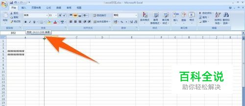 像这种情况的,可以将鼠标移到单元格上方的分界处,待鼠标变成带左右箭头状的图标时,可以按住鼠标,将其向右拉宽一些,如下图所指。