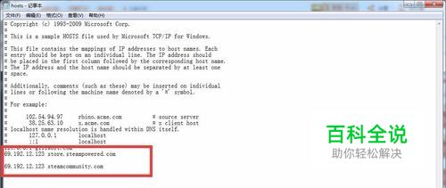 然后我们将hosts文件加上以下内容: 69.192.12.123 store.steampowered.com 69.192.12.123 steamcommunity.com 并且保存退出。