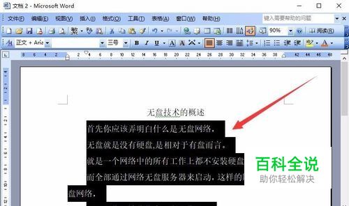 首先,打开要进行处理的Word2003文档,选中需要进行合并的行。
