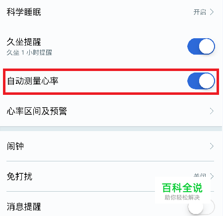 开启心率测量开关。 Android手机,手环和手机正常连接,请直接在穿戴APP主界面打开自动测量心率开关即可;