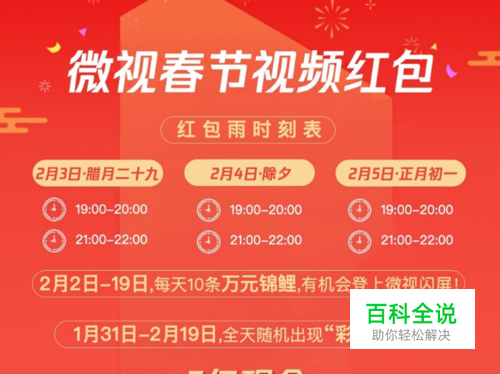 其次,对于玩法一无所知,建议先关注微视官微,有许多视频红包相关的攻略可以自取,如图,就是今年微视春节视频红包雨的攻略图。