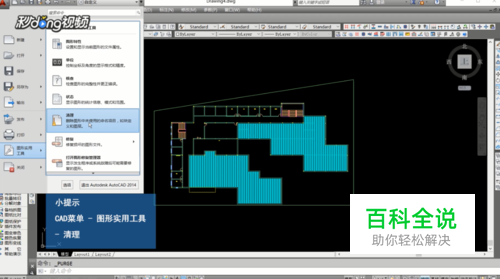 打开软件后,点击窗口左上角的CAD图标,点击图形实用工具,在弹出的子菜单中点击清理,系统弹出清理窗口。