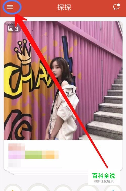 探探账号在登录的状态下,点击 左上角的三横小图标。如图所示