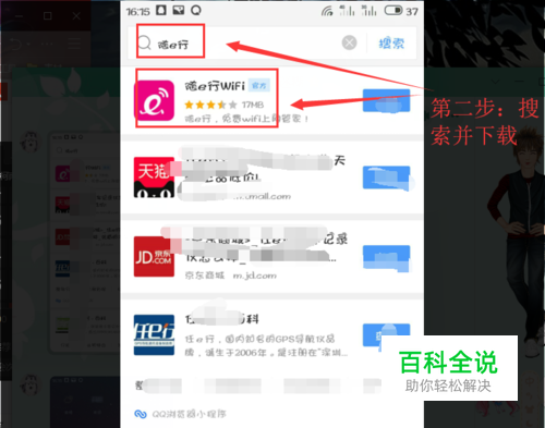 随E行连接网络第二步:完成手机浏览器的开启以后,在搜索栏中输入并且搜索需要的手机程序。搜索到以后进行下载。