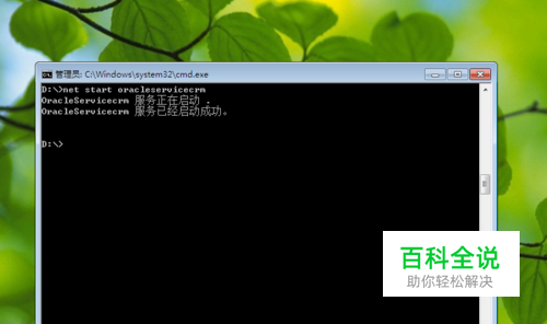 启动oracle服务,在命令行窗口中输入“net start oracleserviceXXXX”后面的XXXX实际是需要根据您自己的数据库实例名进行替换。如果您不知道,可以看下“计算机管理”界面下的服务中,能不能找到服务名类似的服务。提示“服务已经启动成功”就说明服务启动起来了。