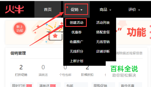 在火牛首页【促销管理】中找到【限购促销】点击进入活动设置页面;或者,在火牛首页导航栏找到【促销】中的【创建活动】选项,点击进入创建活动页面,在该页面选择【限购促销】活动。点击创建活动。