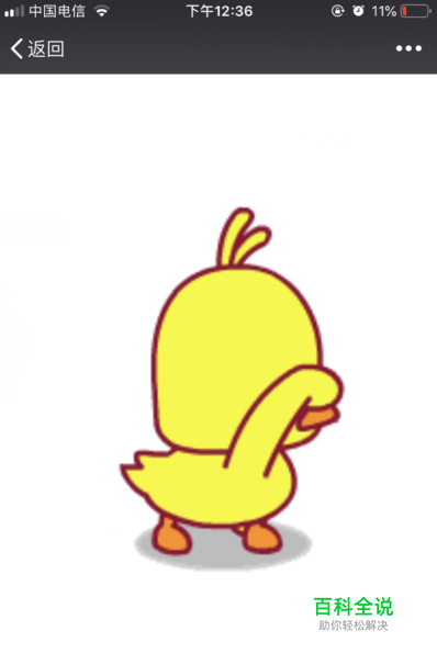 我们打开微信将小黄鸭的表情发给好友。然后点击表情进入后查看,可以用手指向外拖动放大该表情、