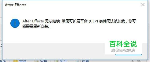 如果安装完成Adobe After Effects 后提示“常见可拓展平台CEP套件无法被加载,你可能需要重新安装。”你不要着急点“确定”