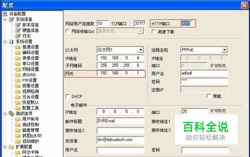 在大华视频服务器的Web界面上,打开“系统配置”界面,在“系统设置”/“网络设置”界面(参见图3)上,将网关设为路由器的内网地址192.168.0.1 注意大华视频服务器的访问Web页面的缺省用户帐号为“admin/admin”。