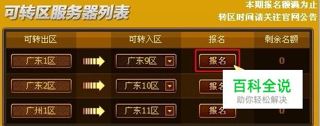 转区报名:每次转区的每个大区转出名额有限,先到先得。