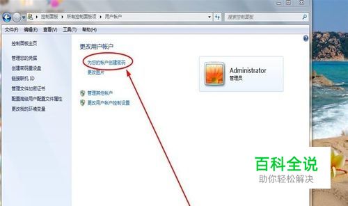 进入"用户帐户"界面,点击“为您的账户创建密码”,如果我们的电脑已经设置了密码,请进行第4步,