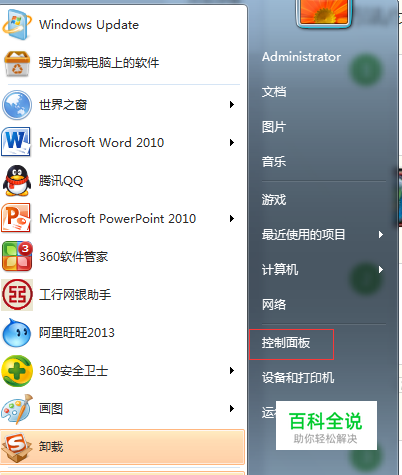 在你开机后,点击主界面左下方的“开始”键(window7中就是一个微软的图标)也可直接点击键盘中相同图案的键,点击“开始”键后选择该界面右侧的“控制面板”选项,将进入如下界面