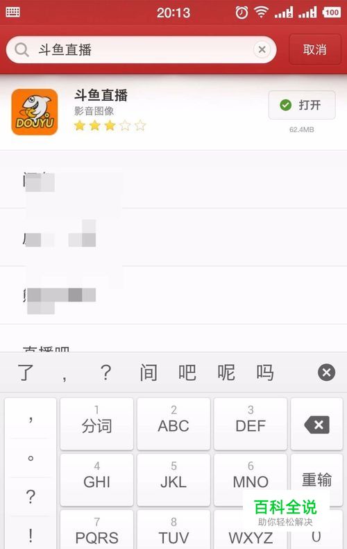 首先,我们去手机的“应用商城”搜索“斗鱼直播”,然后安装到手机上。