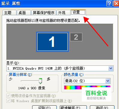 点击“显示属性”窗口上的“设置”