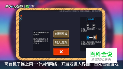 首先两部手机的游戏版本要相同,最好也是从同一个平台下载的。两个机子连上同一个wifi网络,开游戏进入界面,首先创建游戏。