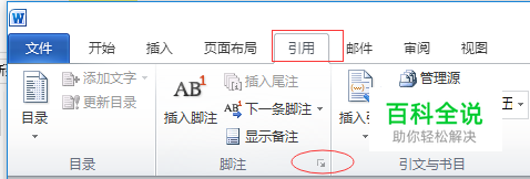 修改脚注格式。点击 引用| 插入脚注右下方的小三角箭头,如图