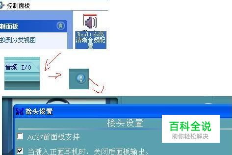 打开控制面板 ,找到“高清晰音频配置” 打开;点 “音频I/O” ,再点击”小扳手“图案---弹出“街头设置”,取消 第一个选项,点OK 。
