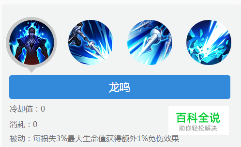 首先是赵云的被动技能为“龙鸣”(详见下方图片内),每损失3%最大生命值获得额外1%免伤效果。