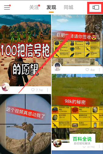 打开快手APP,点击右上角按钮录制视频。