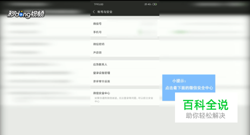 点击账号与安全,点击微信安全中心