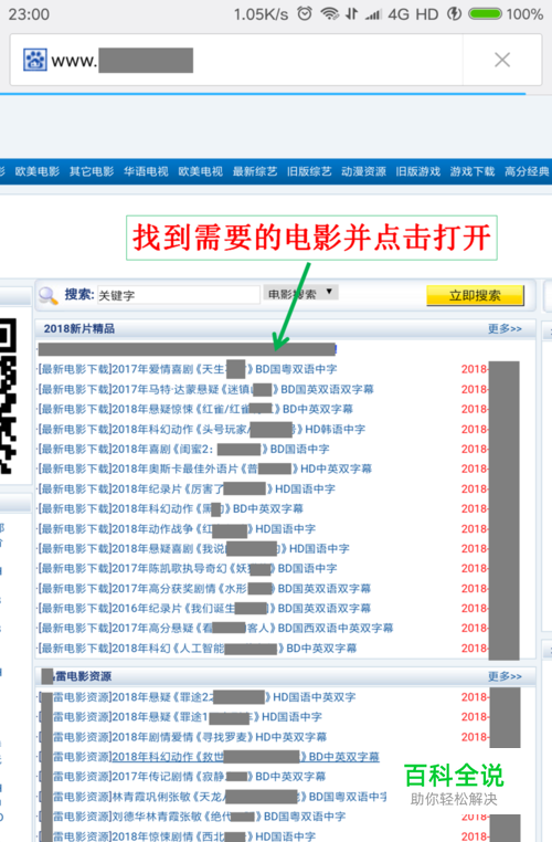根据搜索出来的结果,然后从搜索里边打开一个电影网站并找到要下载电影点击打开。