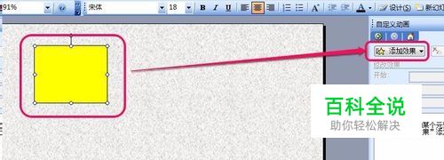 用鼠标单击选择矩形,接下来单击“自定义动画”窗格中的“添加效果”项。