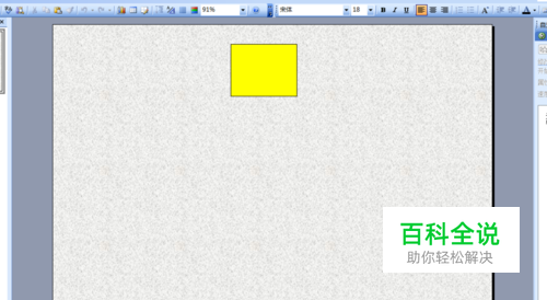 例如有这样一张ppt片子,里面有一个黄色矩形图形,为了使得效果比较明显,我们要做到当鼠标单击矩形时,矩形从顶部下落。