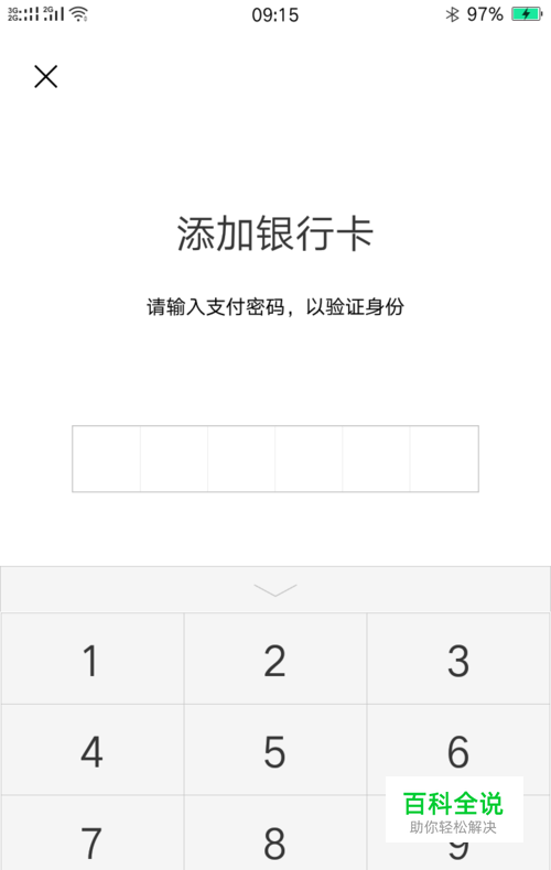 当前显示的是微信添加银行卡,请输入支付密码的验证身份信息窗口。