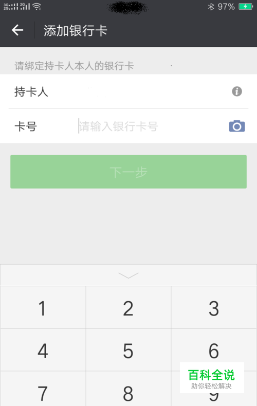 在手机下方显示的数字键盘内输入持卡人的卡号。