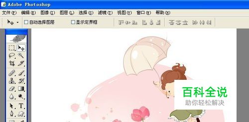 PS的版本很多,后面的版本越来越大,占的计算机资源也会多些,用PS8的版本在旧计算机上打开的速度会快些。此处用PS8的版本来讲解。打开PS软件,用PS打开要换背景的图片。例如一张人物卡通图片。