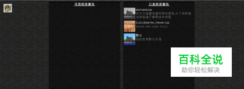 等我们再到这个界面后,我们就会发现,我们刚刚移进文件夹的材质包在左边,接下来,光标移动到这个材质包的左边【图片】上,会出现一个箭头,点击移动到右边。