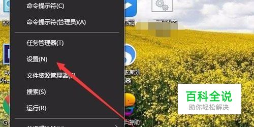 在Windows10桌面,右键点击开始按钮,在弹出的菜单中选择设置菜单项。