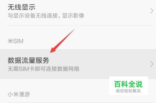 进入后,我们就可以看到米SIM卡的功能选项,这时我们再点击“数据流量服务”