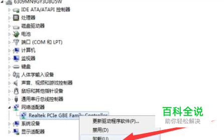 点击列表的网络适配器就可以看到下面出现一个无线网卡驱动。用鼠标点击卸载之后重新根据自己电脑型号下载安装驱动就可以了。