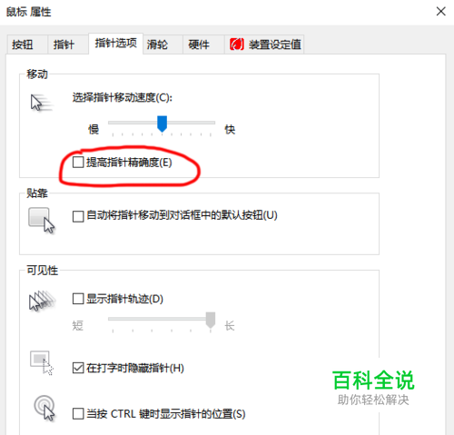 取消掉“提高指针精确度”