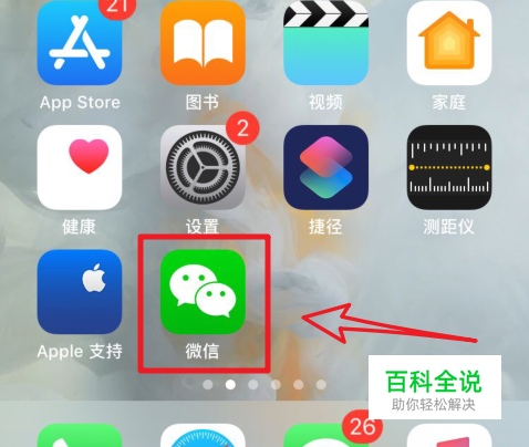 解锁我们的手机进入系统后,在手机中找到微信的应用,点击该应用进入。